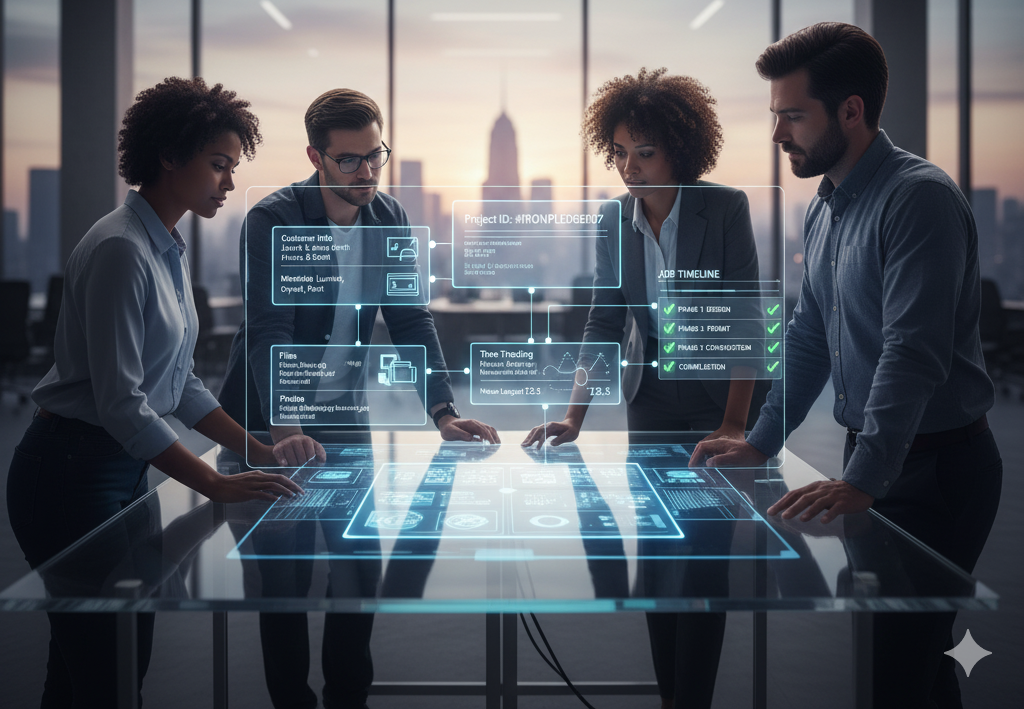Unique Project IDs with customer info, materials, files, photos, and time tracking—linked to your job timeline.
